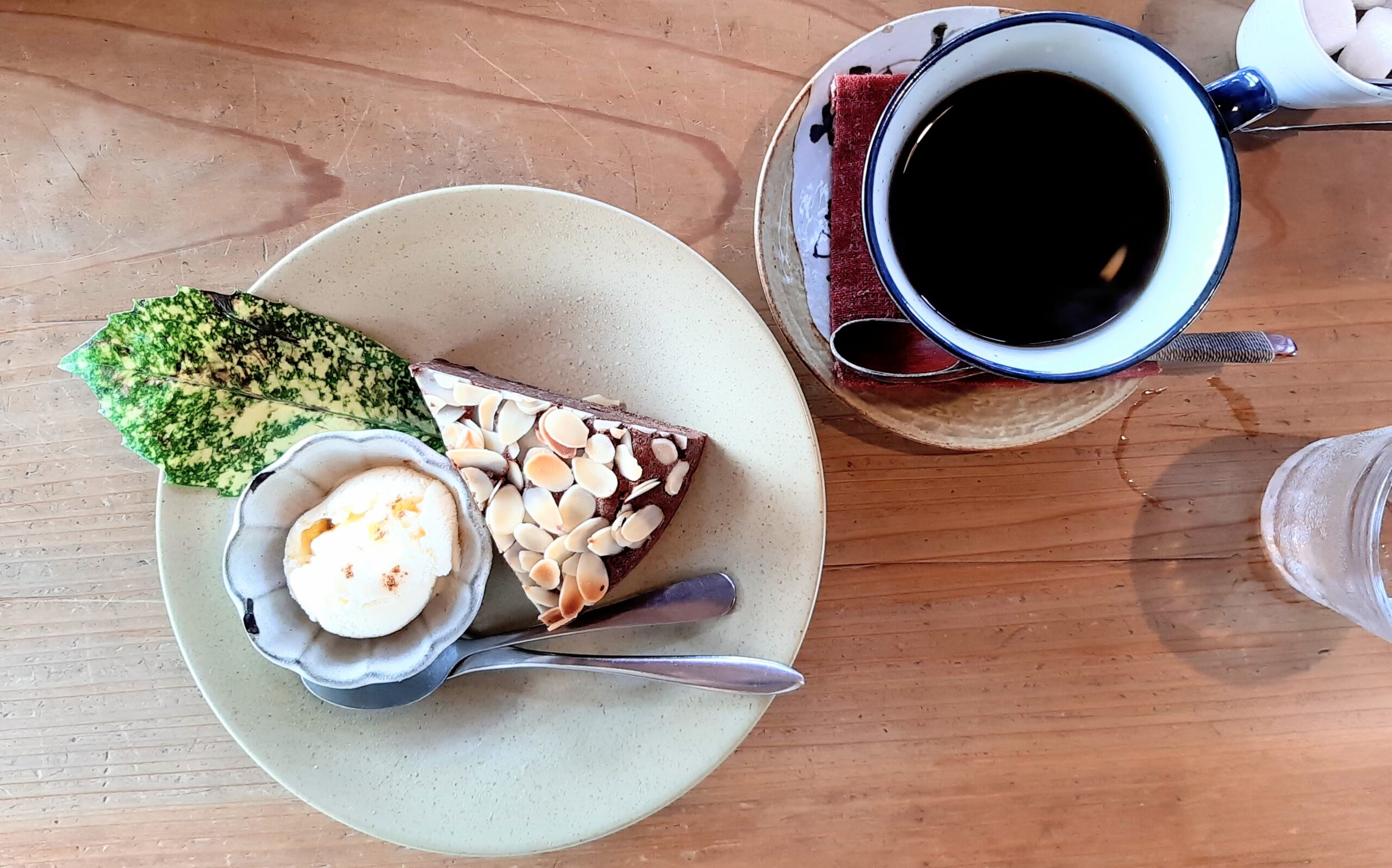 そして近くに「お寺カフェ」があり、モーニングが朝8時〜11時。まだ早い時間でしたが、混んでいました。ケーキセットを頼み、待ちながらはじめての店内。